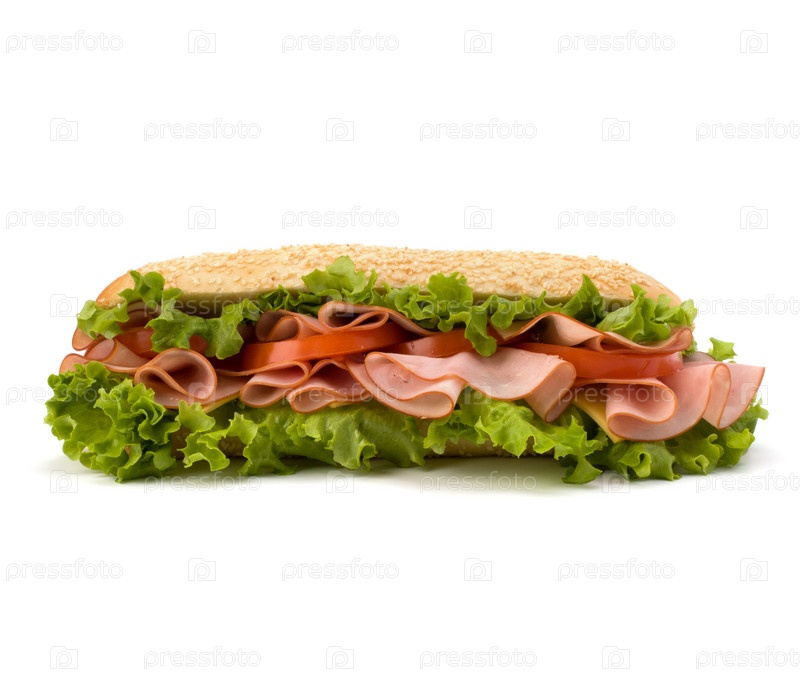 Бутерброд с листьями салата, помидором, ветчиной и сыром