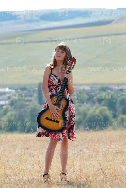Девушка с гитарой на фоне просторов