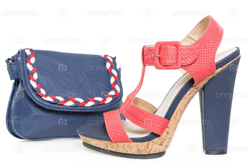 Сине-розовая сумка и обувь на белом фоне