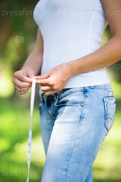 Женщина измеряет талию