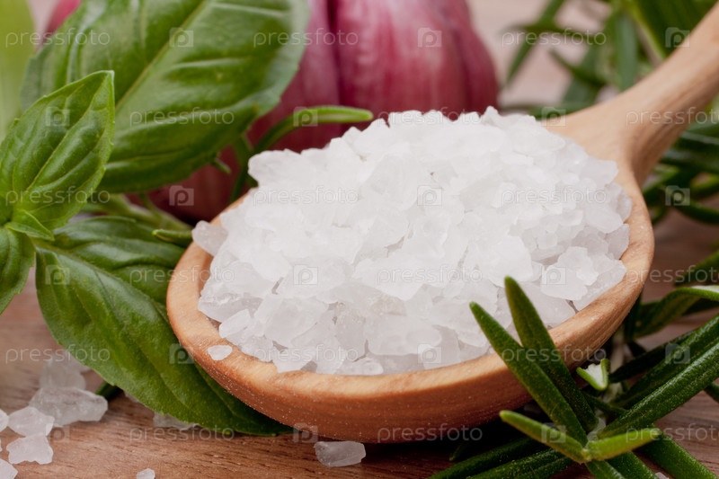Свежие травы и соль в ложке