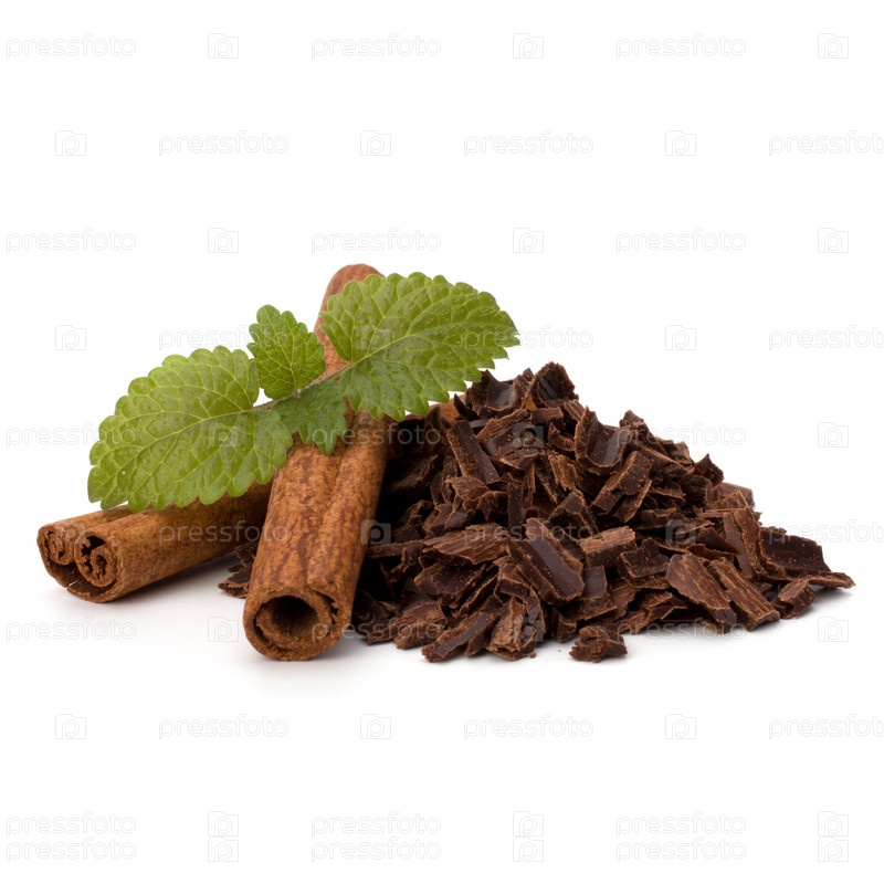 Измельченный шоколад и палочки корицы