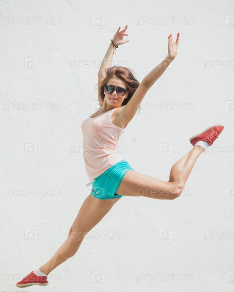 Возбужденная девушка прыгает