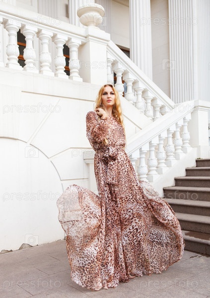 Красивая блондинка в длинном платье