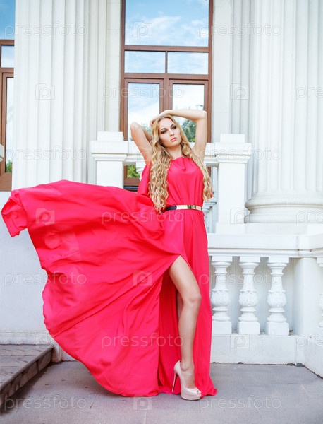 Красивая блондинка в платье на открытом воздухе