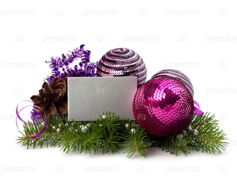 Рождественские украшения с поздравительной открыткой, изолированные на белом фоне
