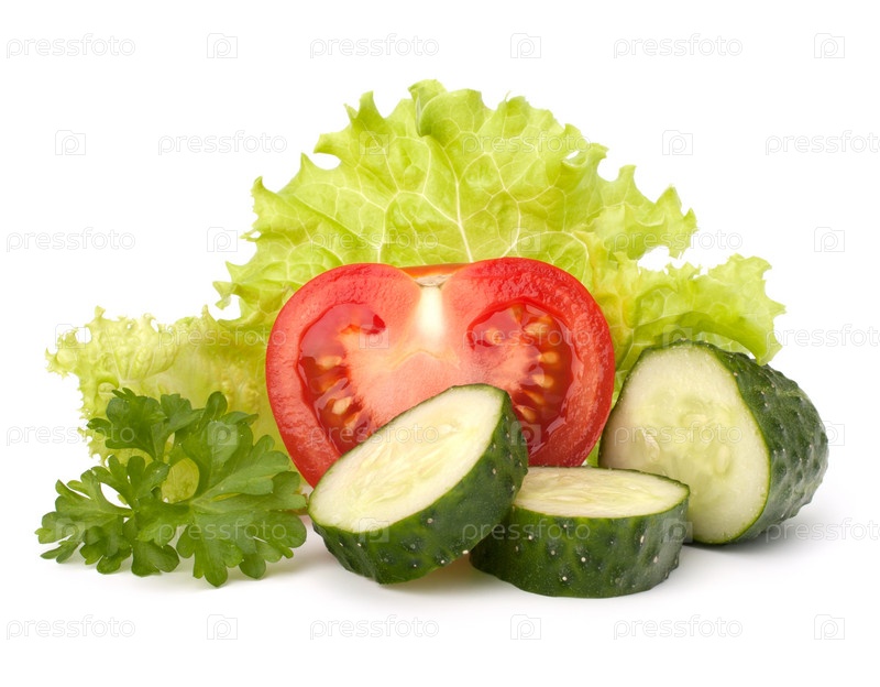 Помидор, салат и огурцы