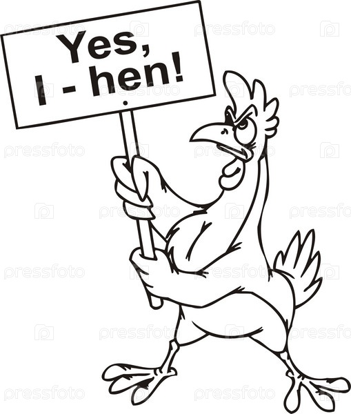 Мультипликационная курица с табличкой "Да, я - курица!"