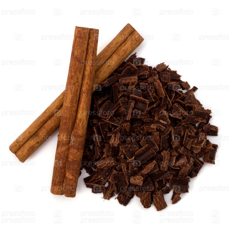 Измельченный шоколад и палочки корицы