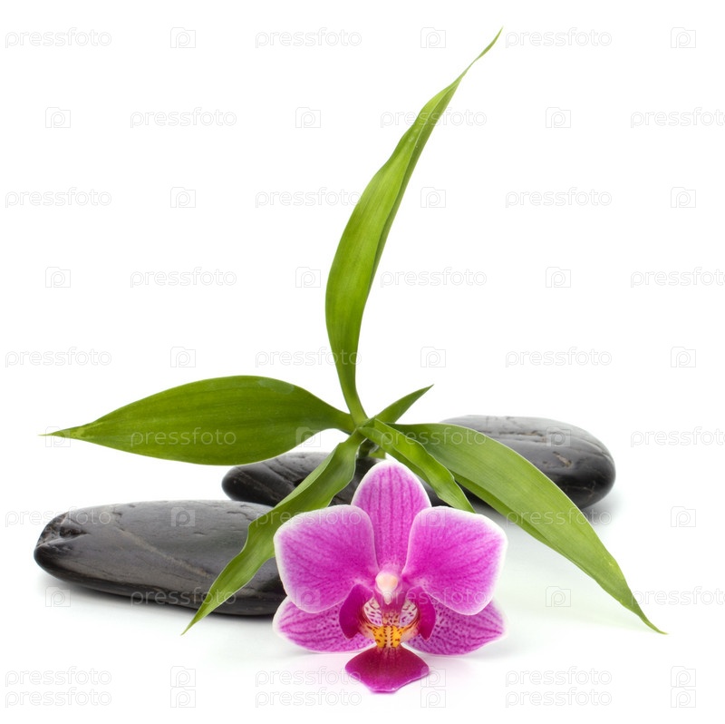 Концепция спа и здравоохранения. Орхидеи и камни