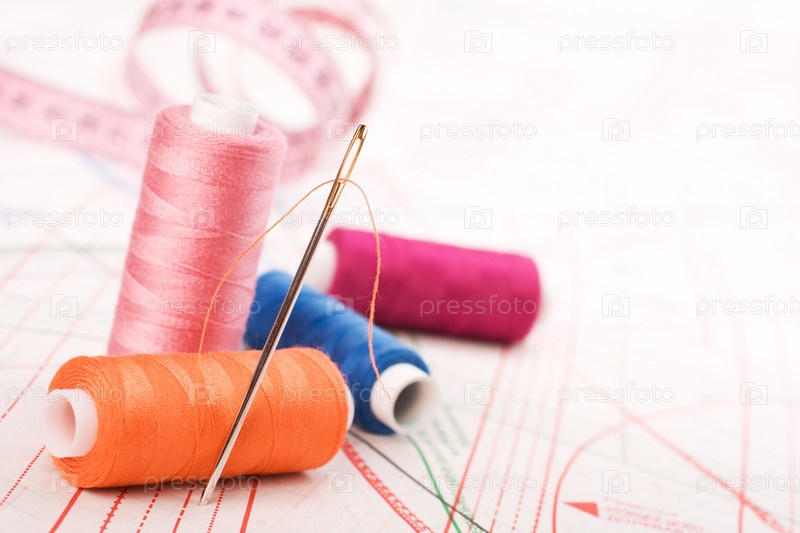 Катушки ниток и игла. Принадлежности для шитья