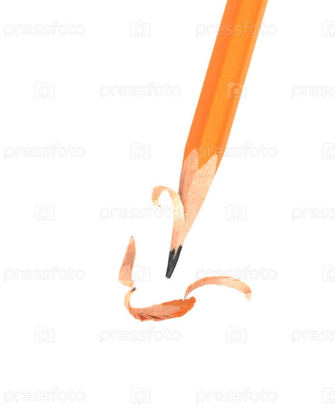 Карандаш и стружки, изолированные на белом фоне