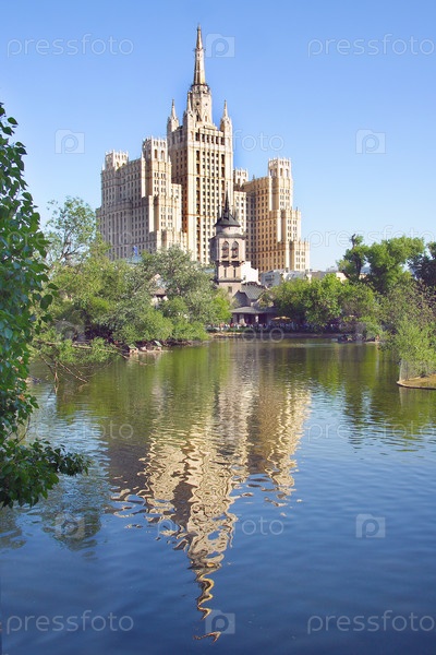Высотное здание отражается в озере