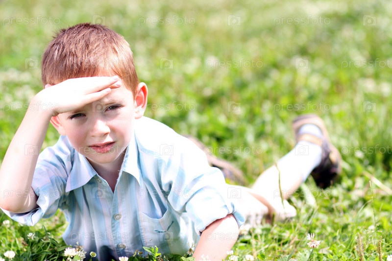 Маленький мальчик, лежащий в траве