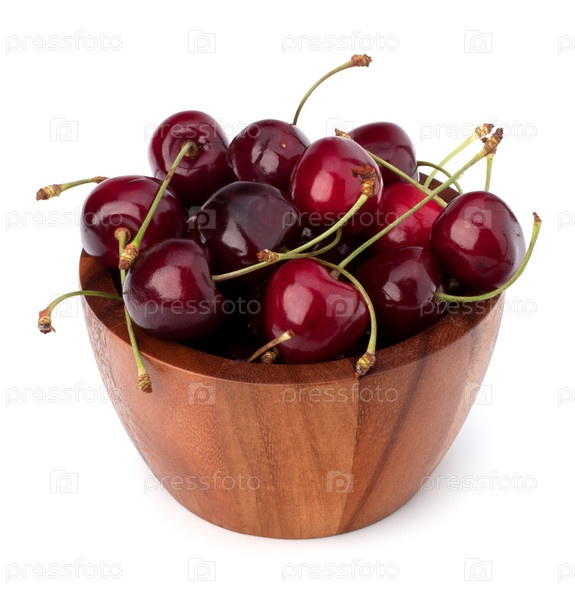 Вишня в деревянной миске