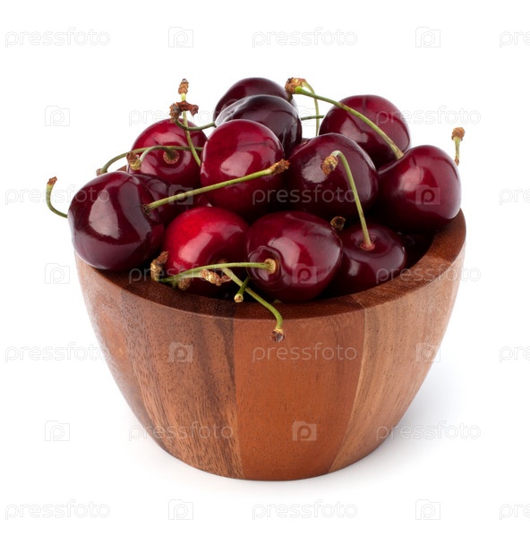 Вишня в деревянной миске