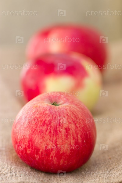 Яблоки на фоне мешковины