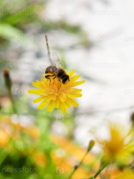 Пчела собирает нектар на желтом цветке