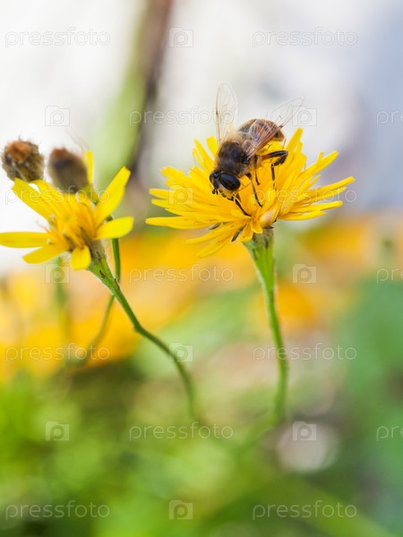 Пчела собирает нектар на желтом цветке