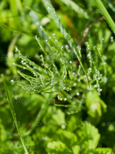 Утренняя роса на хвоще