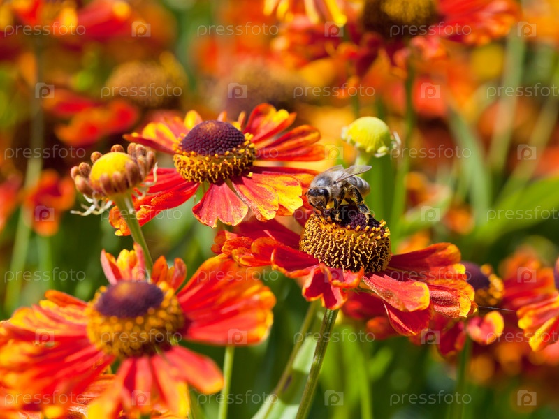 Пчела собирает нектар из цветка гайллардии