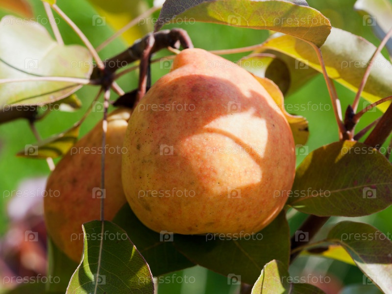 Груша на дереве во фруктовом саду крупным планом