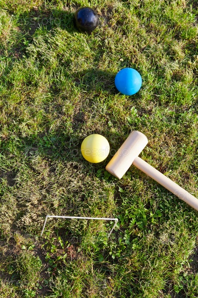 Игра в крокет на зеленом газоне