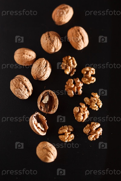 Грецкие орехи на черном фоне