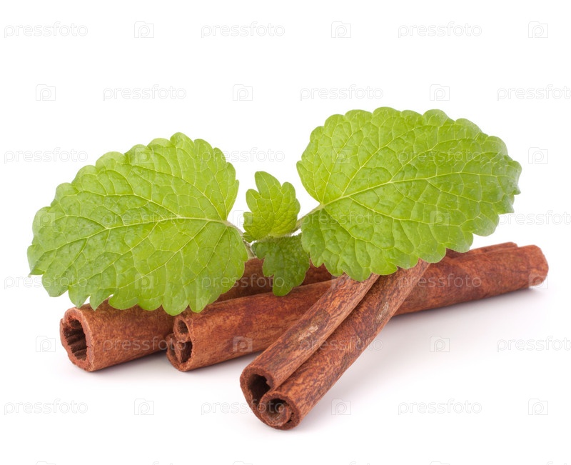 Палочки корицы и листья свежей мяты