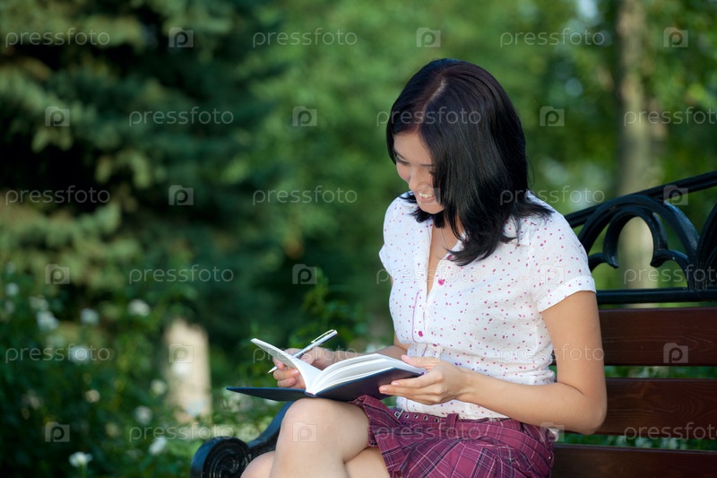Молодая красивая девушка с блокнотом в парке