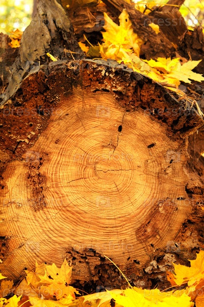 Осенние листья и бревно