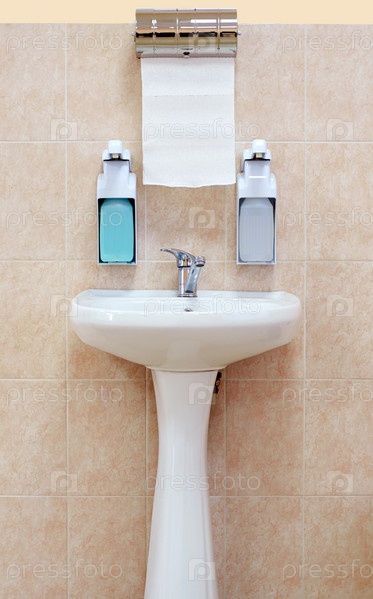 Умывальник с бумажными полотенцами и жидким мылом