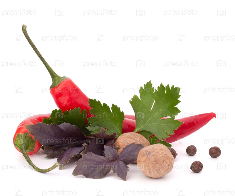 Красный перец чили и ароматические травы