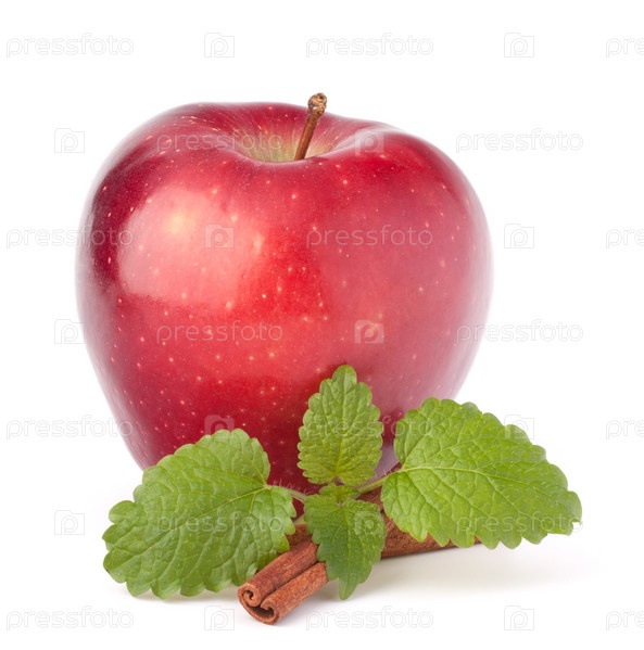 Красное яблоко, корица и листья мяты
