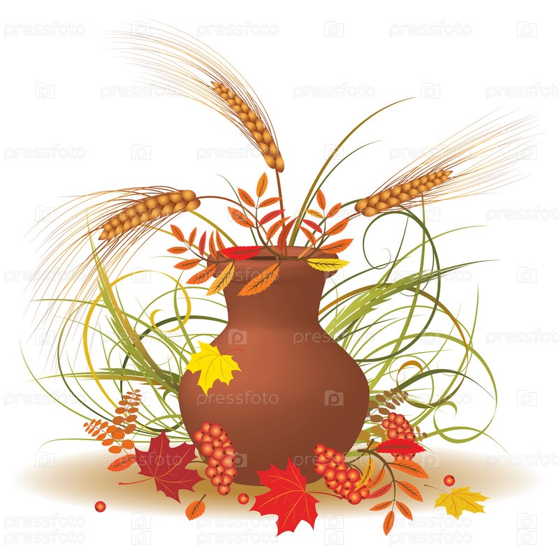 Осенние листья и колосья в кувшине