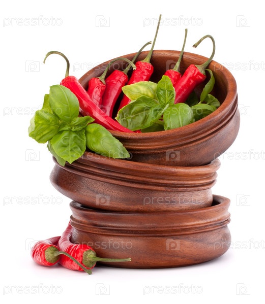 Красный перец чили в деревянных мисках