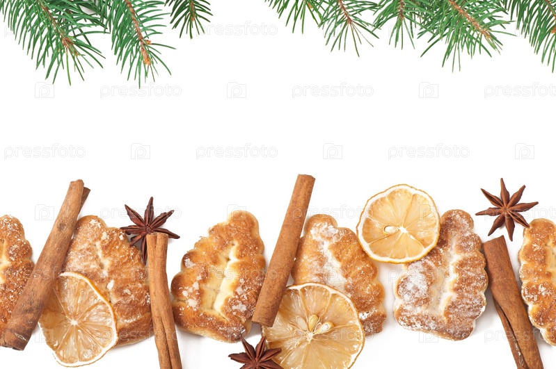 Рождественские украшения с елкой на белом фоне