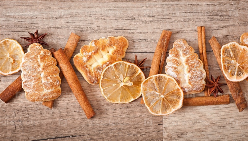 Пряники и специи на деревянном фоне