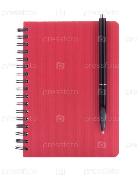 Красный блокнот с ручкой