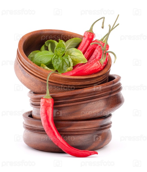 Красный перец чили в деревянных мисках
