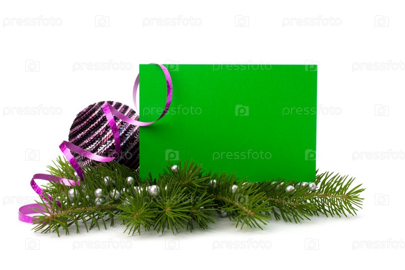 Рождественские украшения с поздравительной открыткой, изолированные на белом фоне