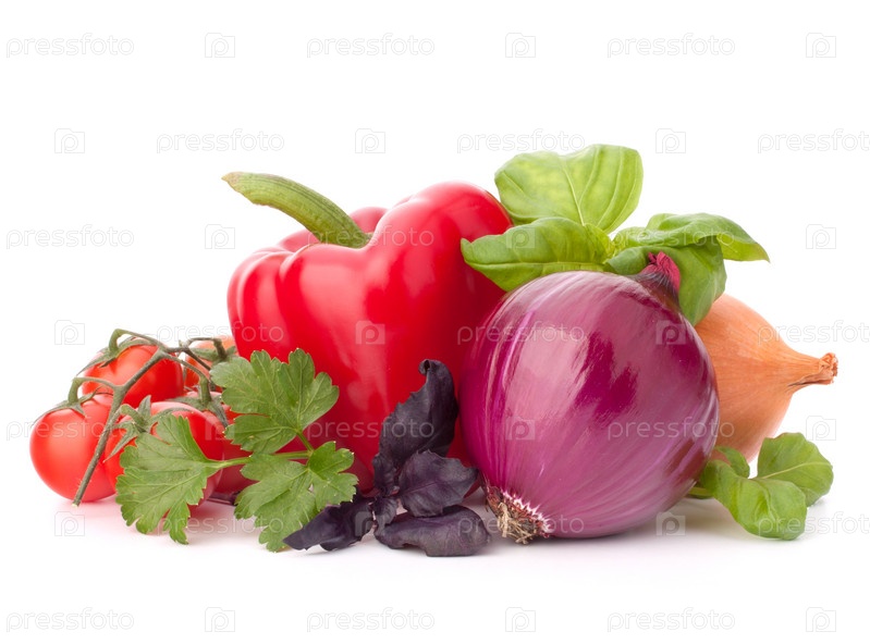 Сладкий перец, лук, помидоры и базилик