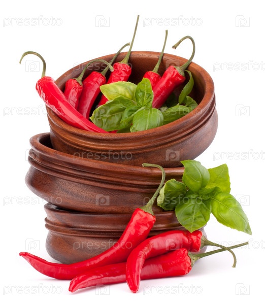 Острый красный перец в деревянных мисках
