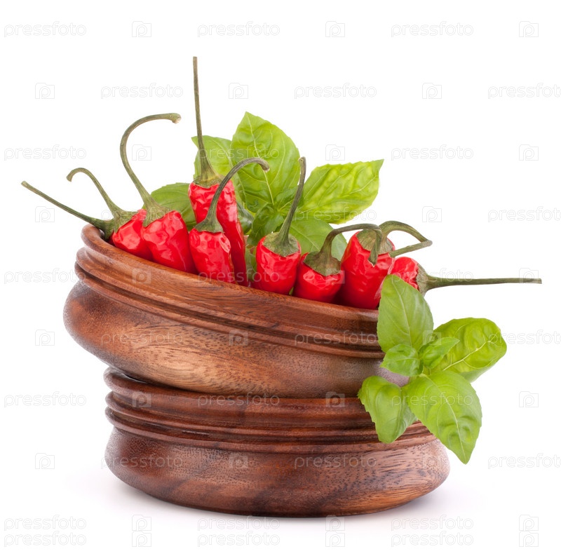 Острый красный перец в деревянной миске