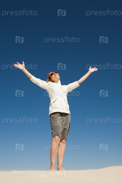 Девушка стоит на песке