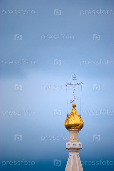 Золотой купол православного храма с крестом