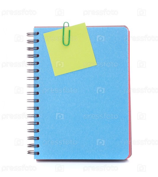 Голубой блокнот с листом бумаги для записи