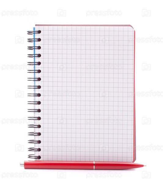 Открытый чистый блокнот в клетку с красной ручкой