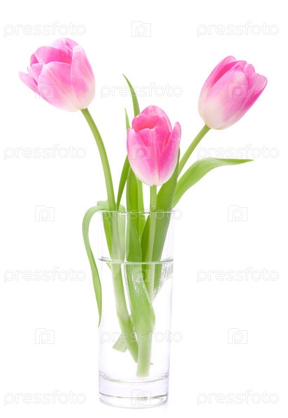 Букет розовых тюльпанов в вазе, изолированный на белом фоне