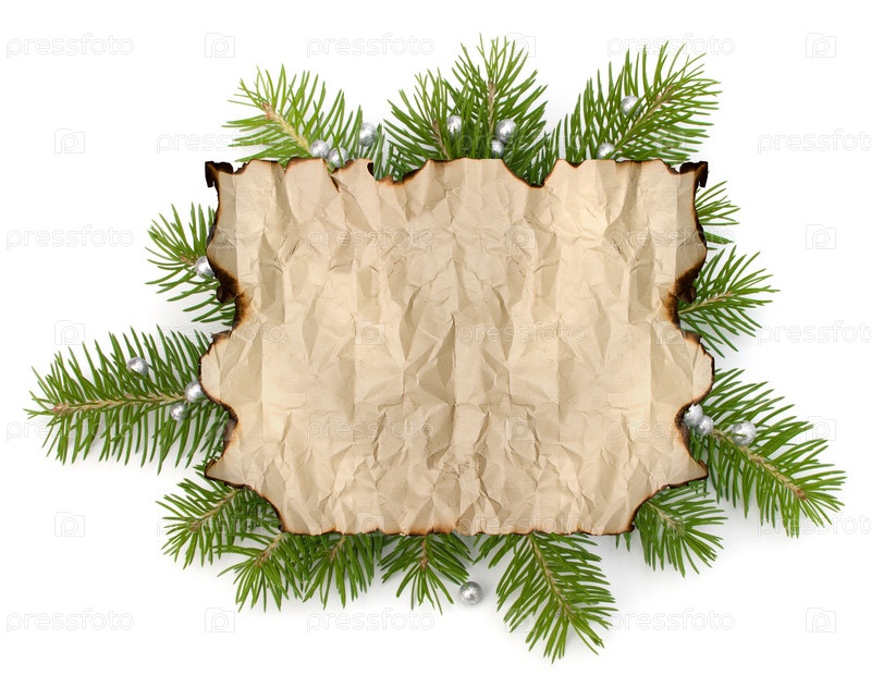 Старый пергамент на фоне еловых веток